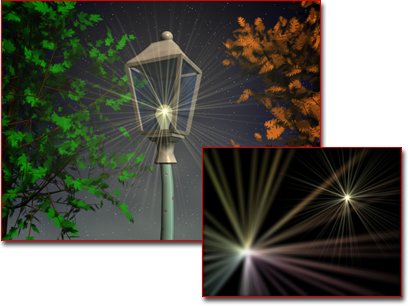 射线是从源对象中心发出的明亮的直线,为对象提供亮度很高的效果。使用射线可以模拟摄影机镜头元件的划痕。