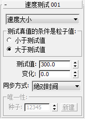 默认情况下,如果测试的值超过了“测试值”的数量,“速度测试”将返回真值,但是也可以选择“小于测试值”。例如,如果使用“速度大小”测试类型,并将“测试值”设置为 200,将“变化”设置为 0,选择“小于测试值”,只有粒子的运动速度超过每秒 200 个单位时,粒子才会移动到下一个事件。任何运动速度小于或等于每秒 200 个单位的粒子将保留在当前事件中,除非以后超过该速度或其他测试返回真值。