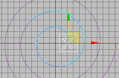 将“速度按图标”操作符添加到“粒子视图”中的粒子系统时,“速度按图标”操作符图标或辅助对象会显示在场景中的世界坐标系原点 (0,0,0)。设置动画时,将为粒子赋予操作符图标的运动。如果删除图标,“粒子流”也会删除此操作符。