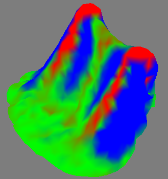 利用顶点颜色可以显现织物中的压缩/张力。拉伸的布料以红色表示,压缩的布料以蓝色表示,其他以绿色表示。您可以使用数值设置更改张力/压缩的范围,可通过在红色和蓝色之间移动来完成此操作。值越大,着色越深。此操作仅限于 Garment Maker 对象。