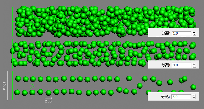 为了加快测试粒子重叠的速度,操作符将不考虑粒子图形或方向。通过与现有粒子的最短距离(分离)来定义重叠条件。如果操作符确定新粒子将与现有粒子重叠,则可以延迟新粒子的出生。