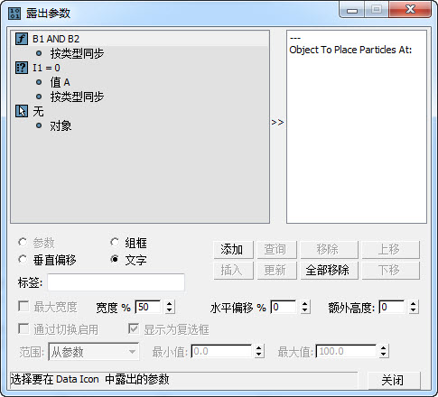 露出参数时的标准过程是在左侧列中高亮显示某个参数,在对话框的下半部分设置参数,然后单击“添加”。