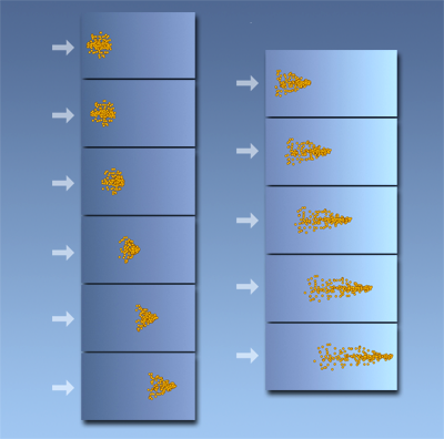 - 打开该选项时,力会根据受影响粒子相对于指定“目标速度”的速度而变化。关闭该选项时,不管受影响粒子的速度如何,力保持不变。