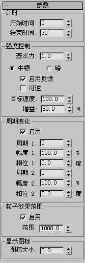 1 磅约等于 4.5 牛顿,1 牛顿为 1 千克/平方秒。当把推力应用于粒子系统时,这些数值仅有主观意义,因为它们依赖于内置的权重因数和粒子系统使用的时间比例。