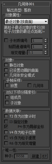 - 显示由“几何体”子操作符输出的数据的类型,这是由“对象属性”选项决定的。