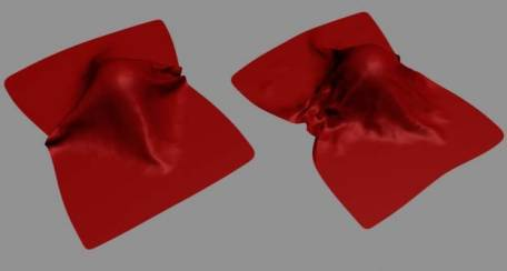 右:U 和 V 弯曲=2.5,模拟丝或其他轻质织物