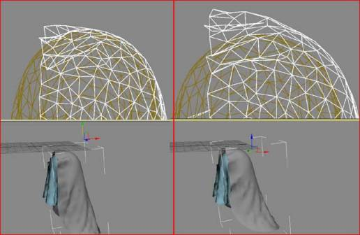 这些设置根据“弯曲 %”和“拉伸 %”设置保留网格的形状。在正常操作下,当布料创建模拟之后,将尝试令布料变平。要启用这些设置,请启用使用目标状态