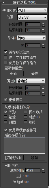 - 每帧“粒子流”将动画数据存入缓存的频率为每帧一次。