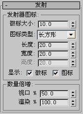 设置发射器(粒子源)图标的物理特性,以及渲染时视口中生成的粒子的百分比。