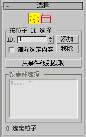 每个粒子都有唯一的 ID 号,从第一个粒子使用 1 开始,并递增计数。使用这些控件可按粒子 ID 号选择和取消选择粒子。仅适用于“粒子”选择级别。