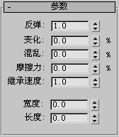 控制粒子从导向器反弹的速度。当设置为 1.0 时,粒子会以和撞击时相同的速度从导向器反弹。当设置为 0.0 时,粒子根本不反弹。当数值在 0.0 和 1.0 之间时,粒子会以比初始速度小的速度从导向器反弹。当数值大于 1.0 时,粒子会以比初始速度大的速度从导向器反弹。默认设置为 1.0。