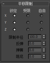 “平移限制”卷展栏