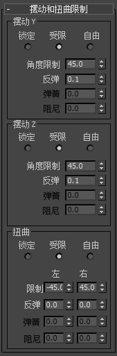 “摆动和扭曲限制”卷展栏