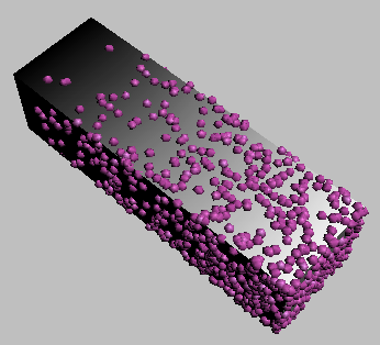 长方体发射器通过渐变进行贴图。“位置对象”设置为“密度按材质”