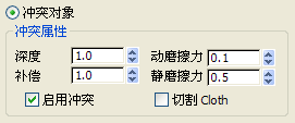 冲突对象的冲突深度。如果部分布料在冲突对象中达到此深度,模拟将不再尝试将布料推出网格。此值使用 3ds Max 单位进行测量。