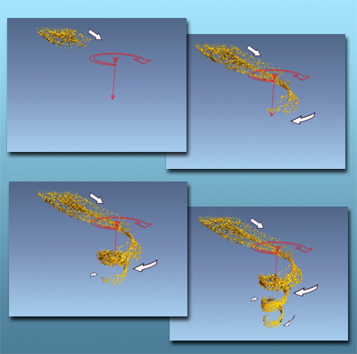 注: 空间扭曲的位置在最终结果中扮演着重要角色。垂直位置影响漩涡的外形,水平位置决定其方位。如果想让粒子绕粒子发射器盘旋,则应将二者放在相同的位置。
