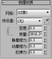 要使动力学刚体的下落速度更快,可在修改器的“物理材质”卷展栏中尝试增加密度(或质量),但不起任何作用。在理想世界(忽略空气阻力)中,不同大小和重量的对象都会以相同的速度下落。(可能您想起了伽利略从比萨斜塔扔下物体的猜想。)可以使对象更快降落的仅有的方法是以下二者之一: