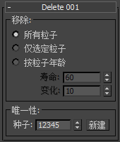 “变化”设置,“唯一性”设置可启用随机最大粒子年龄。