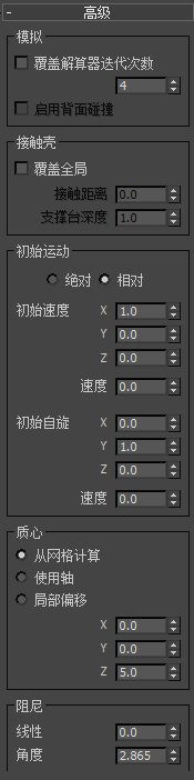 “刚体属性”卷展栏