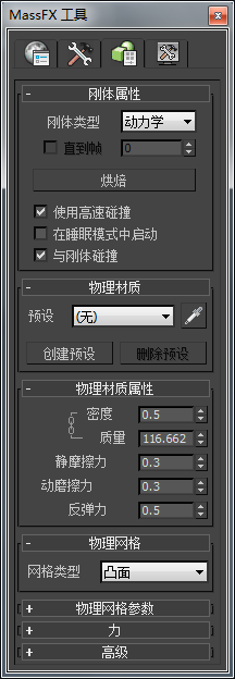 “物理网格”卷展栏