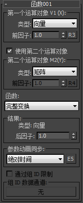 - 启用时,会将 R3 输入添加到子操作符中,您可以将输出实数值的任何子操作符连接到该操作符。此输入前因子可替换显式前因子值,并且在应用函数之前会与第一个运算对象相乘。