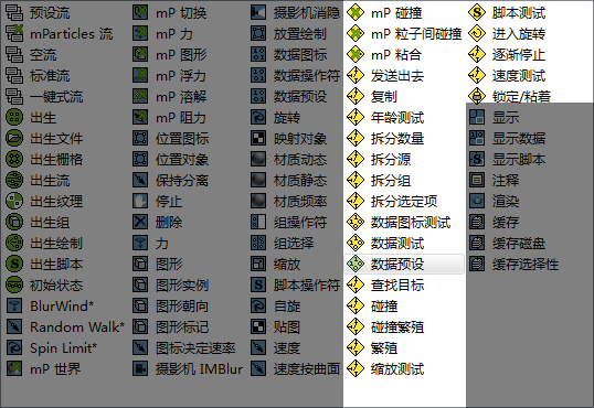 有些测试还可以作为操作符使用,因为其中包含修改粒子行为的参数。如果没有将测试与另一个事件关联,则只能作为操作符使用;测试部分不影响粒子流。