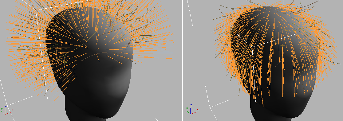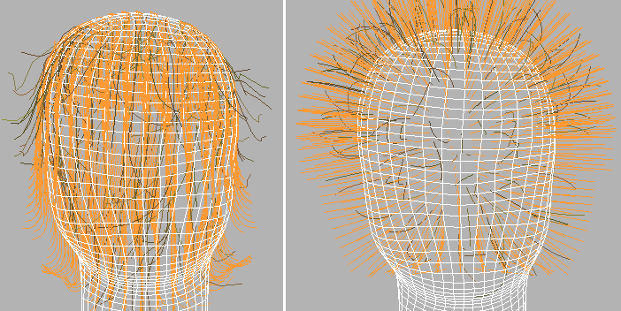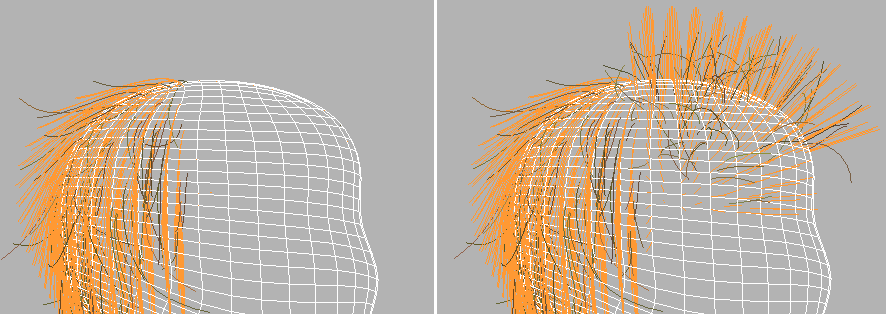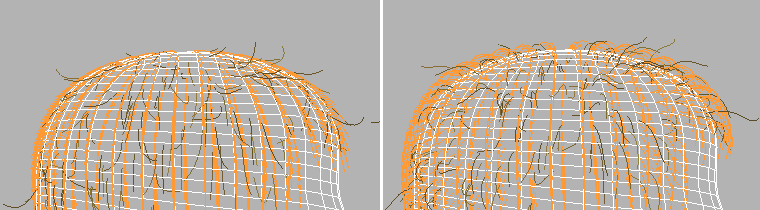 右:在“蓬松发根”作用之后的毛发导向