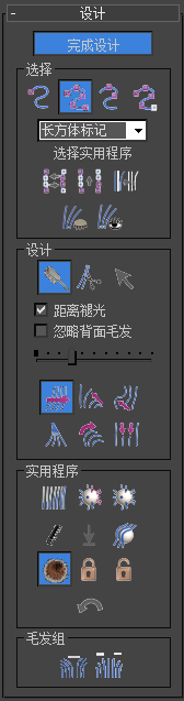 单击“设计发型”将其启用,或者在“选择”卷展栏或修改器堆栈中选择“导向”子对象层级之前,样式工具不可用。