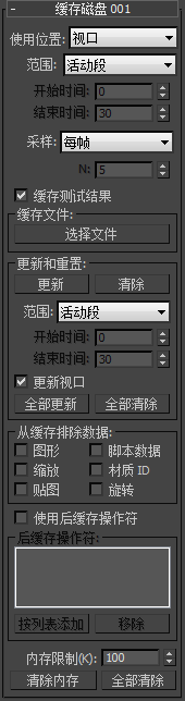 - 设置“缓存磁盘”操作符在其中操作的帧范围。默认设置为“活动段”。