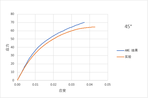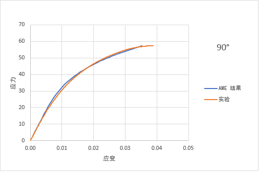 我们可以看到零度时实验数据和 Advanced Material Exchange 输出之间良好的一致性。请记住,Advanced Material Exchange 使用基于应力的失效准则,所以事实上对于每个曲线而言,我们将获得极为类似的极限应力,这让我们确信可以放心地继续使用该工具。