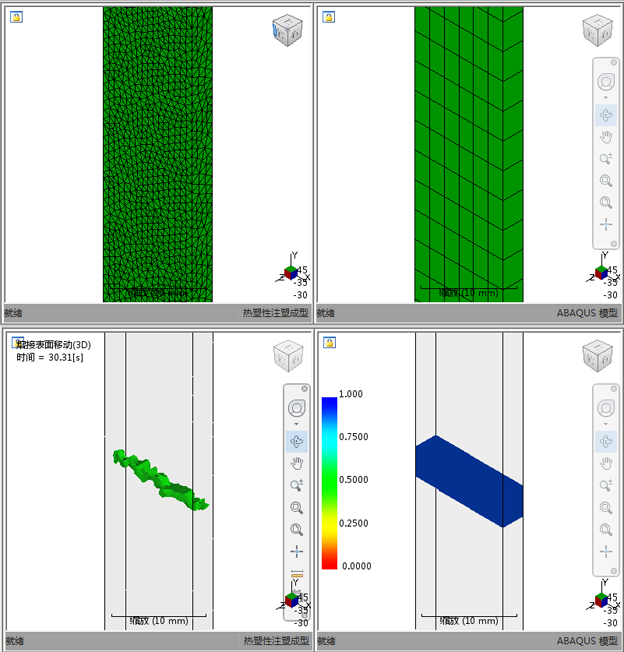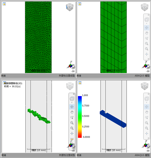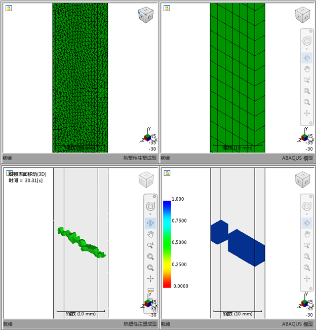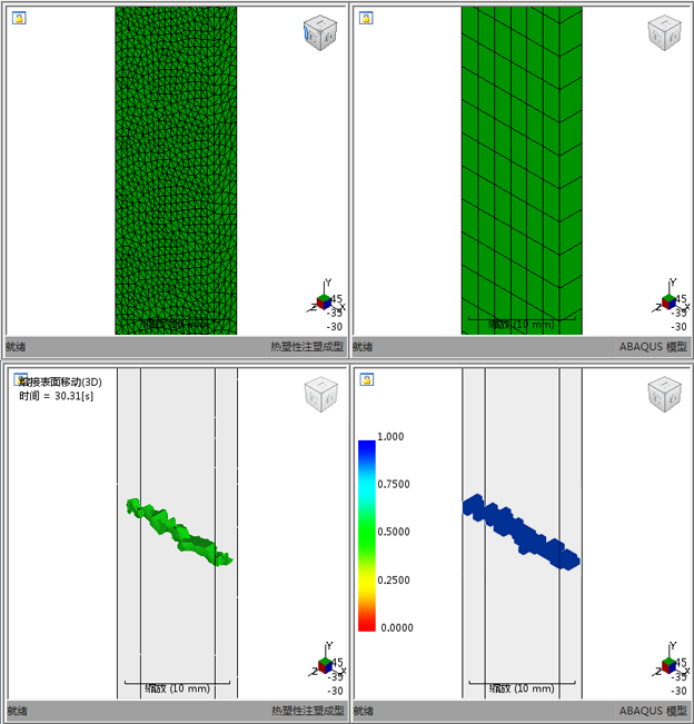 我们可以清楚地看到,随着结构模型的网格不断优化,它开始形成在 Moldflow 模型中显示的熔接面的形状。作为最佳做法,我们建议在与 Moldflow 网格比较时,结构网格密度为 1:1 或者更精细。