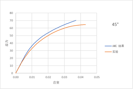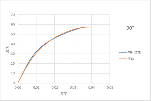 我们可以看到零度时实验数据和 Advanced Material Exchange 输出之间良好的一致性。请记住,Advanced Material Exchange 使用基于应力的失效准则,所以事实上对于每个曲线而言,我们将获得极为类似的极限应力,这让我们确信可以放心地继续使用该工具。