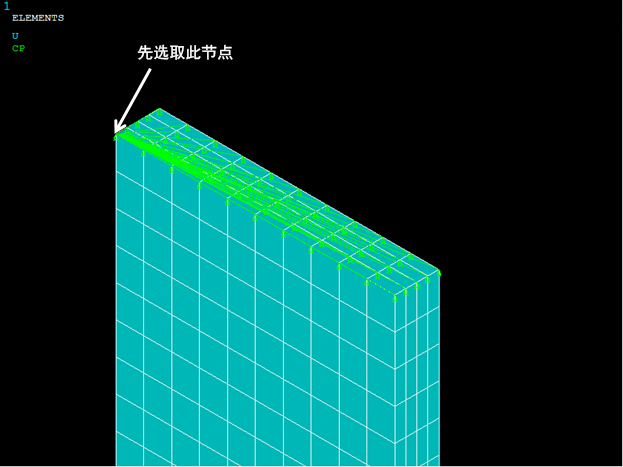 由于应用了耦合约束,将使得应用于以下亮显节点的 Y 方向位移与应用于约束定义中其余节点的 Y 方向位移相同。