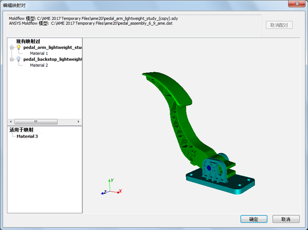 在已配对一个或多个零件并且已在零件之间映射结果后,这将有助于切换活动对,进而可以可视化纤维取向、残余应变和熔接面。