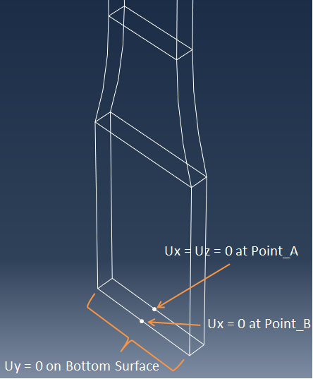 创建边界条件,以便最低限度地约束样本底部表面的移动并阻止刚体移动。
