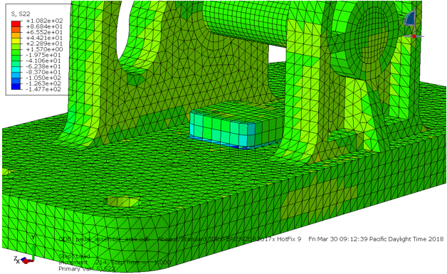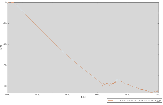 - 在踏板座上选择一个以压缩形式加载的单元,然后创建 S22 XY 图(“工具”>“XY 数据”>“创建”)。