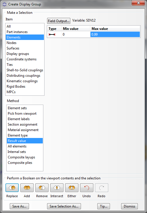 - 依次单击“Tools”>“Display Group”>“Create”,并按“Result value”查看“Elements”。