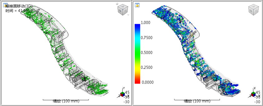 结构模型上的等值线图显示强度折减系数。由于我们选择了用户指定值 0.90,因此恒定强度折减系数将用于整个零件。