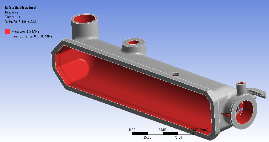 我们将通过施加 1.50 MPa 的内部压力来加载水箱。