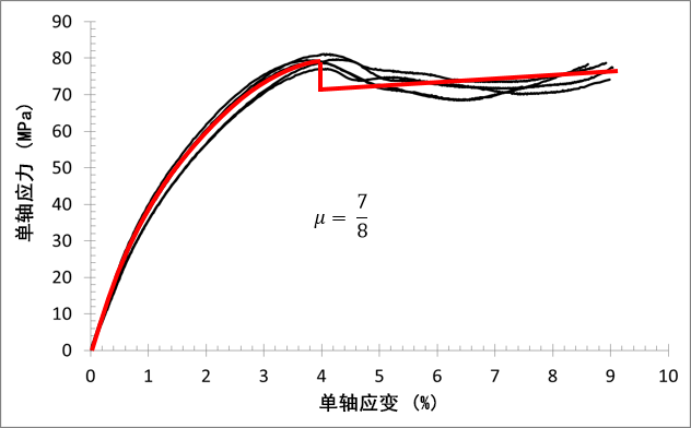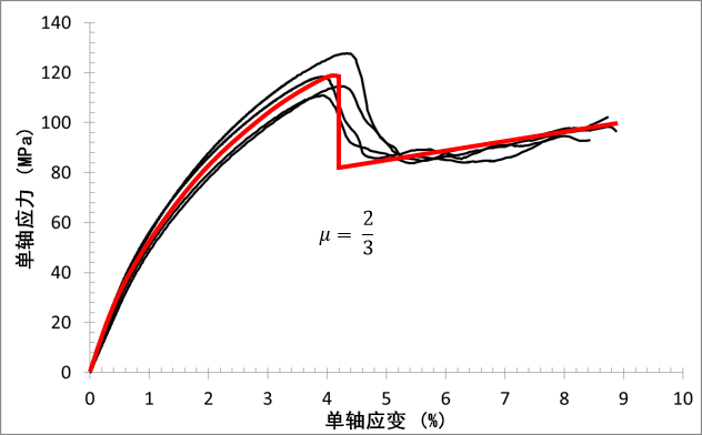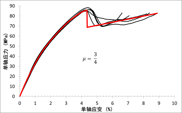 之前我们看到了显示材料如何展示压缩下的载荷降低的实验数据。我们把此载荷降低的幅值称为 μ。μ 值会随载荷角度的更改而改变。因此,我们需要一种方法来确定触发压缩失效准则的任意应力状态的 μ。
