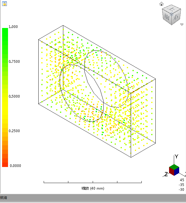 例如,在纤维取向快速变化的位置上,可能需要更大的结构网格密度才能捕获不断变化的取向。在纤维取向变化较小的区域中,粗糙的网格可能适合映射纤维取向张量。以下所示的映射匹配性图描绘了结构网格的高斯点位置。以绿色表示的位置拥有足够的细化来捕获纤维取向的变化。以红色表示的位置可能需要额外的细化。
