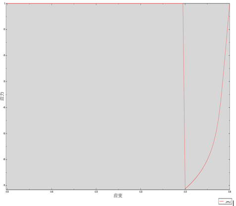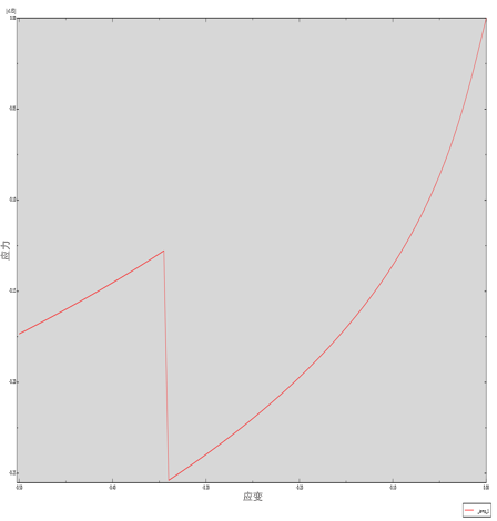 应力-应变曲线现在表现出拉伸失效的典型响应。塑性再一次持续累积,但是当结构的彻底失效发生时,合成刚度将降低为非常小的数(默认为 1E-06)。这在较大的应力下降中很明显。
