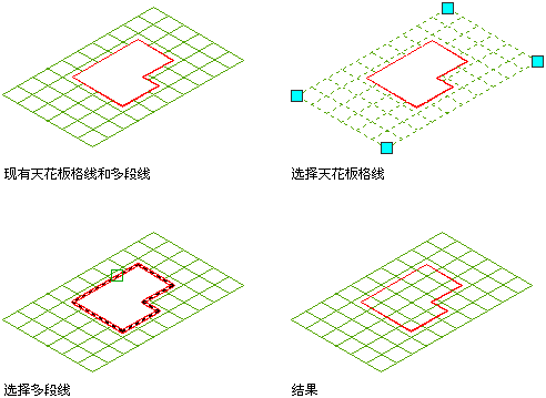 随后,孔将从天花板格线中删除。但是多段线仍保留在图形中。如有必要,可以手动将其删除。