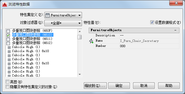 | 仅显示已附着选定特性集定义的对象 | 选择“隐藏没有特性集定义的对象”。 |