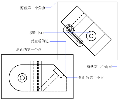 由两点定义用作辅助投影的倾斜平面。这两点必须在同一视口中。