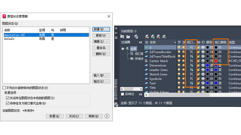 可以将当前图层设置另存为图层状态,以便在以后恢复或输入到其他图形。