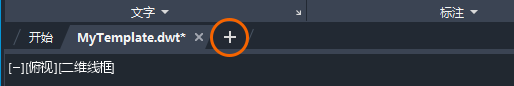 测试对样板所做更改的简单方法是:先保存样板,然后单击图形选项卡上的 + 以创建新图形。保持样板处于打开状态以进行测试,可以非常快速地更改样板。