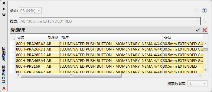 注: 由 ASSEMBLYLIST 值定义的子装配条目不会包含在搜索结果中。使用目录浏览器的编辑模式可以查看和编辑子装配条目。
