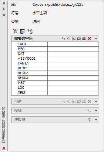 将属性 TAG1、DESC1、LOC、INST、FAMILY、MFG、CAT 和 ASSYCODE 添加到自定义符号。