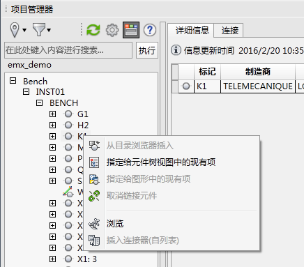从元件树视图或“详细信息和连接”窗格中的元件表达移动到图形中的符号。